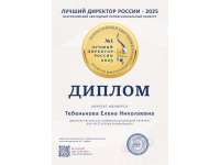 Почетной грамотой Всероссийского ежегодного профессионального конкурса "Лучший директор России - 2025" награждена директор Тебенькова Елена Николаевна