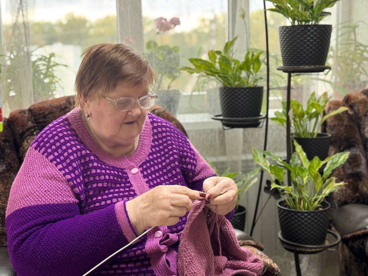 Лариса Михайловна – настоящая волшебница спиц и пряжи! Все свое свободное время она посвящает вязанию, создавая изящные и теплые вещи. Каждая петелька, связанная ею, наполнена заботой и любовью. От уютных свитеров до ажурных салфеток – ее работы всегда восхищают своей аккуратностью и красотой.