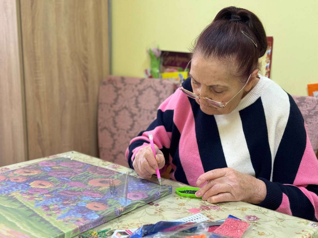 Лидия Андреевна – мастер алмазной мозаики! С невероятным терпением и точностью она выкладывает крошечные сверкающие стразы, превращая обычные холсты в настоящие произведения искусства. Ее картины переливаются и завораживают, принося в дом атмосферу праздника и блеска.