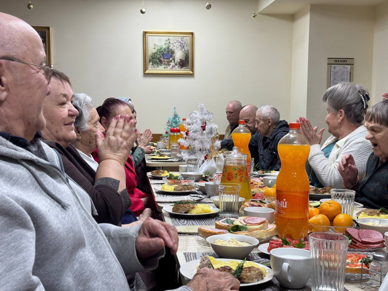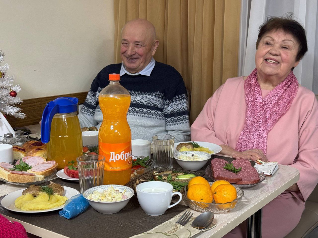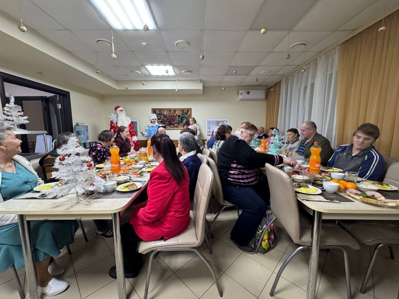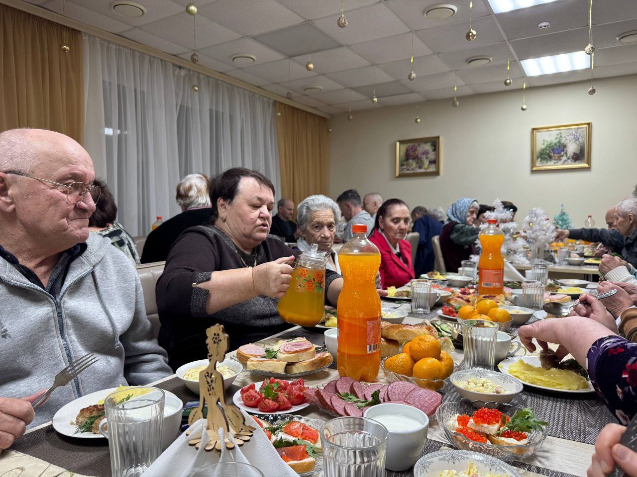 🎄✨ Праздничный новогодний стол в нашем доме: Встреча с Дедом Морозом и Снегурочкой! ✨🎄 Новый год – время волшебства и радости! В нашем доме мы с особым трепетом готовились к этому чудесному празднику. Кульминацией стал наш праздничный новогодний стол, объединивший всех в атмосфере заботы и семейного уюта. Самое главное – сияющие улыбки и счастье на лицах наших дорогих жителей! Мы стремимся сделать этот Новый год незабываемым для каждого, ведь это время, когда сбываются мечты. А поздравление Деда Мороза и Снегурочки 🎅🎁 наполнило зал смехом и праздничным настроением. Их дружные песни и веселые истории сделали вечер по-настоящему магическим! Выражаем огромную благодарность Благотворительному фонду "Старость в радость" за помощь в организации новогоднего стола! Каждый из нас внес свой вклад, и вместе мы создали настоящий калейдоскоп вкусов и ароматов. Пусть в каждом доме царит праздник, а в сердцах – надежда и любовь! ❤️ Помните, что даже самые простые моменты, проведенные в кругу близких, могут стать самыми ценными воспоминаниями. С наступившим новым годом! Пусть он принесет всем нам счастье, здоровье и множество новых возможностей! 🌟🥳