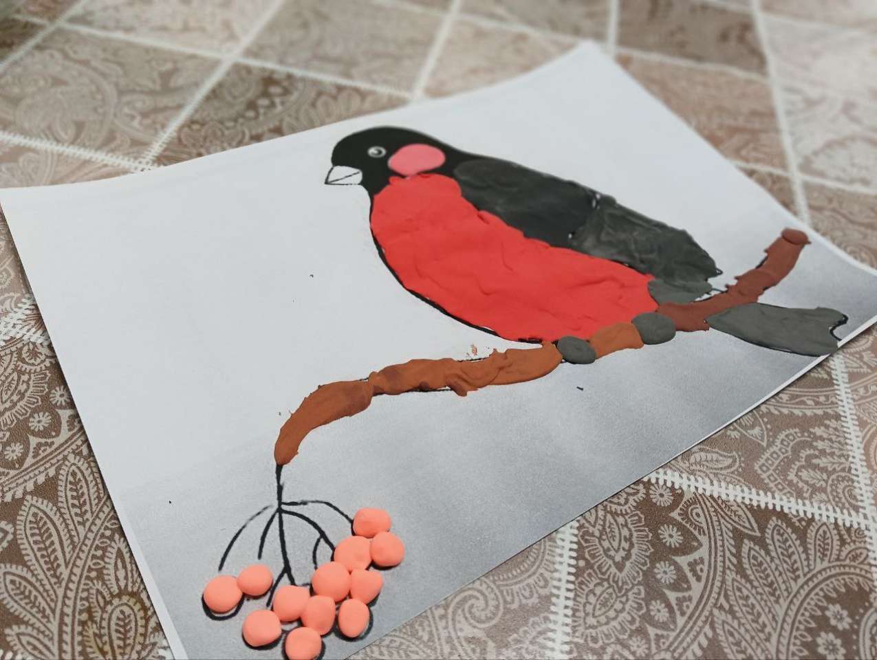 На этот раз нашей музой стал очаровательный снегирь, которого мы раскрашивали воздушным пластилином. Этот материал придает работам объем и нежность! У всех снегири получились невероятно красивыми и уникальными.