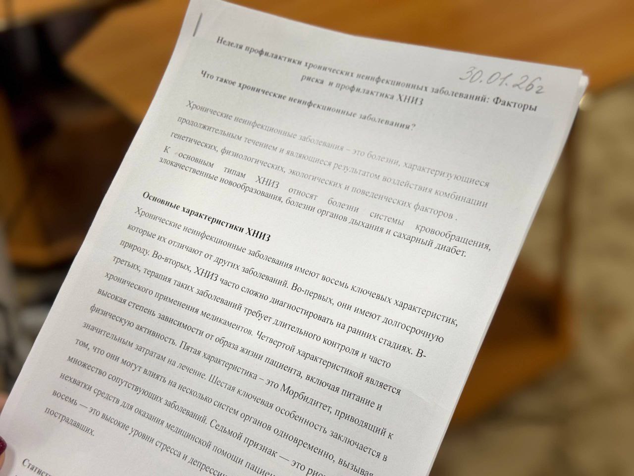 🗓️ 26 января - 1 февраля 2026 года: Неделя профилактики неинфекционных заболеваний! 🗓️ Сегодня мы прослушали очень познавательную лекцию от врача-терапевта. Она подробно рассказала о том, как важно заботиться о своем здоровье, чтобы предотвратить развитие таких распространенных неинфекционных заболеваний, как сердечно-сосудистые патологии, диабет, онкологические заболевания и хронические респираторные болезни. Мы обсудили ключевые аспекты здорового образа жизни: правильное питание, достаточная физическая активность, отказ от вредных привычек и регулярные медицинские осмотры. Помните, профилактика – это не просто слова, это ежедневные шаги к здоровому будущему. Берегите себя и своих близких! ❤️
