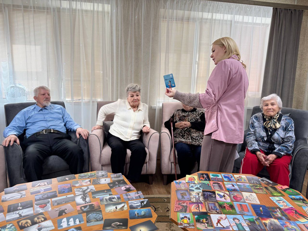 Создали атмосферу доверия.Участники выбрали карты — и в образах увидели свои тревоги: одиночество, страх перемен и др. В бережном диалоге обсудили, что вызывает эти чувства.