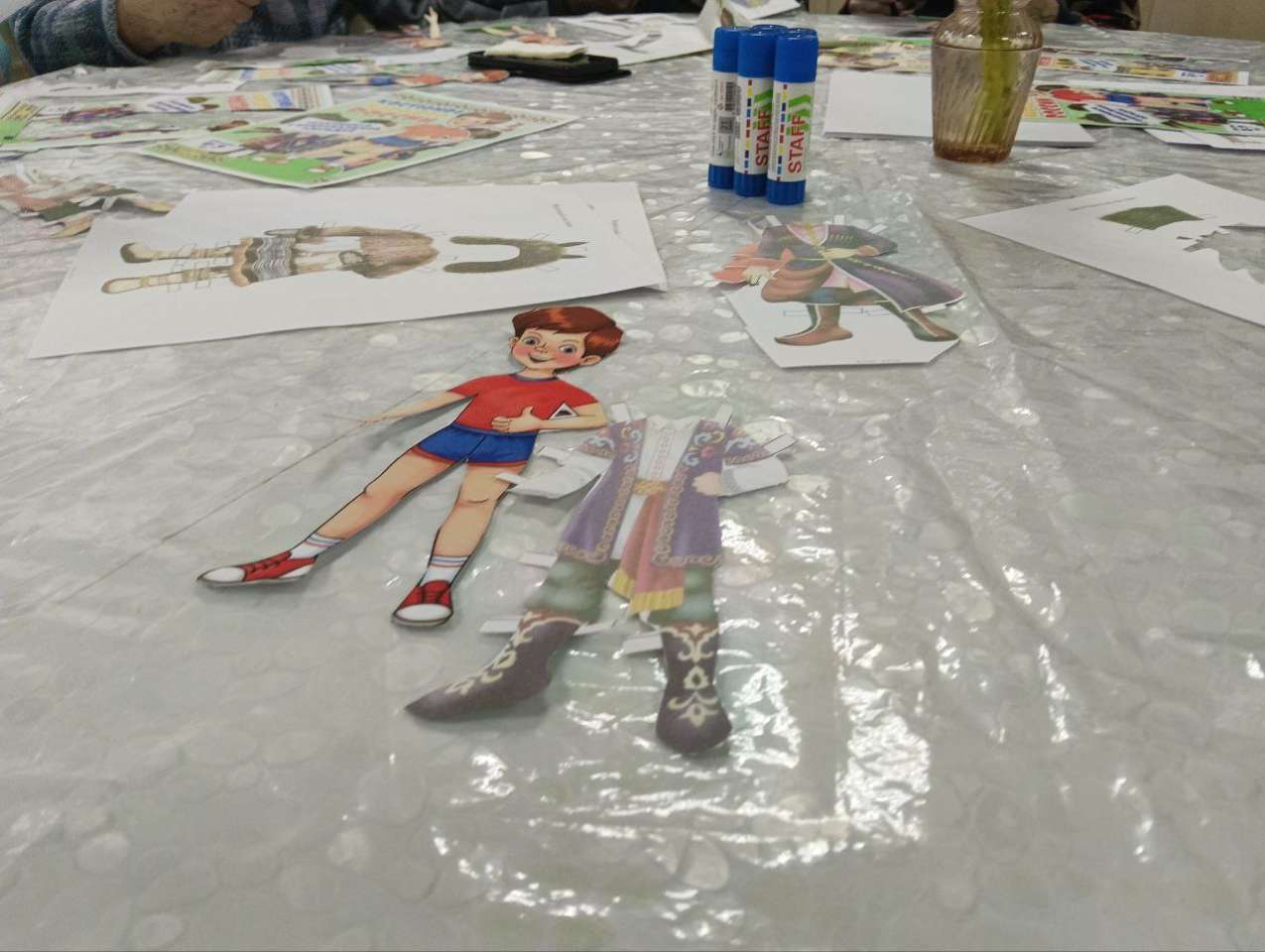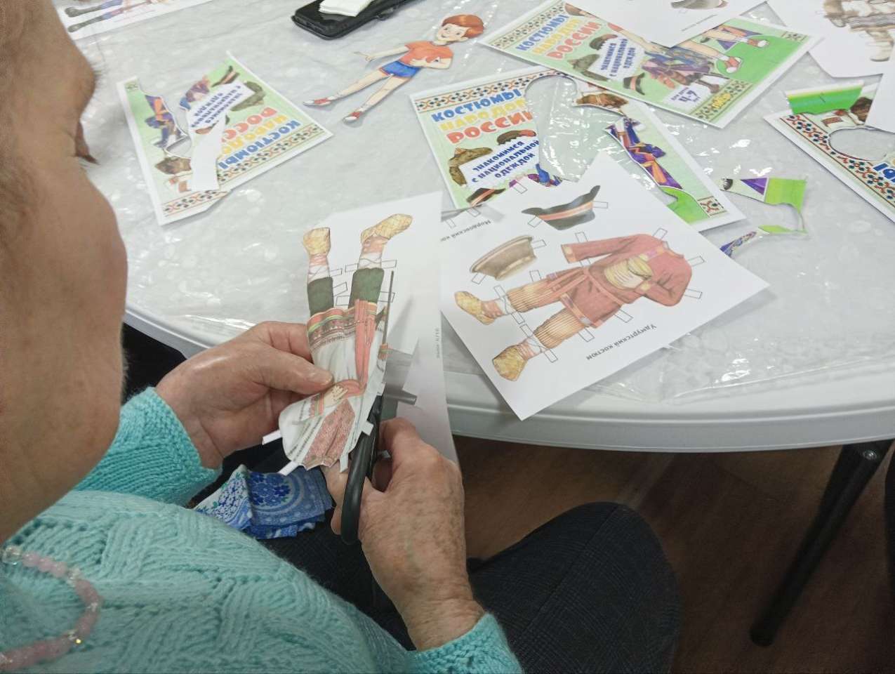 Куклотерапия. А мы продолжаем осваивать нашу новую "Творческую мастерскую " и в рамках проекта "Куклотерапия " мы с удовольствием занимались вырезанием кукол из бумаги, а затем с особым вниманием и старанием украшали их национальными костюмами народов России. Это занятие не только развивает мелкую моторику и творческое мышление, но и является прекрасным способом познакомиться с богатым культурным наследием нашей страны. Занятие было увлекательным, познавательным и вызвало живой интерес у всех, принимавших в нем участие.