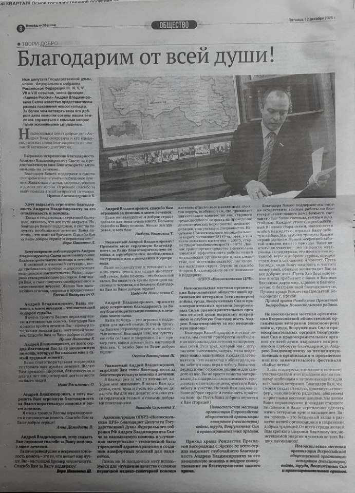 Мы в СМИ и СМИ о насСтатья опубликована в Новооскольской районной общественно-политической газете "Вперед" от 12 декабря 2025 года № 50 (13094)